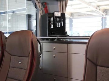 Would you like to pamper your passengers with small meals and refreshing beverages even when on the move? The on-board kitchen of your MAN bus is fitted with all the appliances needed to meet your personal requirements, from a fridge and a microwave right through to a coffee machine.